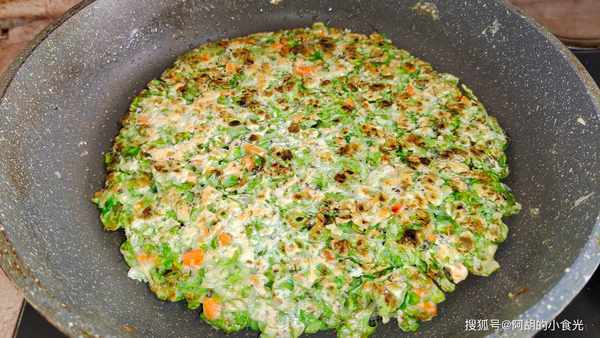 第五步:把其中一面煎的金黃,再用鏟子鏟起來翻面,將另一面也煎至金黃酥脆的程度就可以出鍋瞭,簡單改刀分成幾份就可以吃瞭。