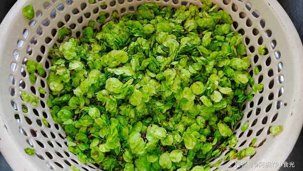 第一步:將榆錢中夾雜的樹枝清理掉,再用清水多多地淘洗幾遍,你也可以用淀粉水浸泡一下,這樣就可以將榆錢中的一些灰塵雜質吸附到水中,撈出後瀝幹水分備用。