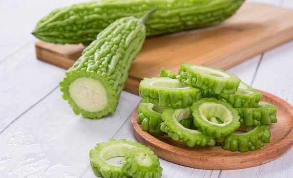 1、苦瓜切成片,少許泡好的黑木耳切成絲。鍋裡燒水,再加一點鹽,食物油,倒入苦瓜焯水一分鐘,再把黑木耳焯水30秒,然後全部撈出過一遍涼水。