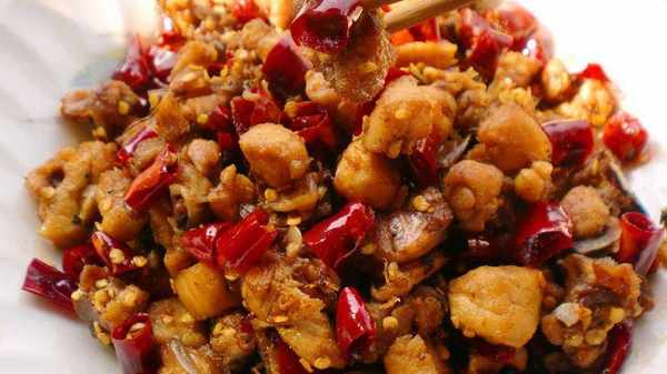 5.辣子雞:四川傳統的川菜之一,選用雞肉塊,加入辣椒、花椒、薑蒜等香料,慢火慢燉而成,雞肉鮮嫩入味,味道濃鬱,是四川必嘗的美食之一。