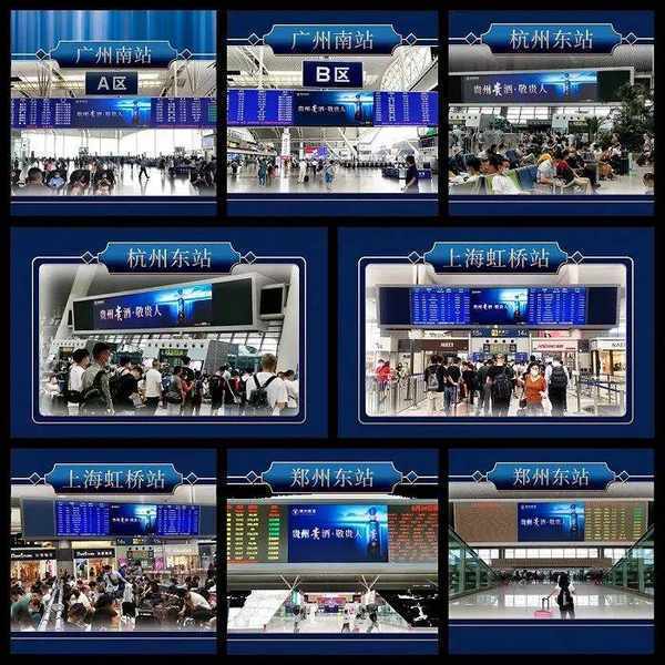 比如2021年中秋國慶雙節期間,貴州安酒就在廣州南站、杭州東站、上海虹橋站、鄭州東站等國內大型高鐵站點投放瞭廣告。