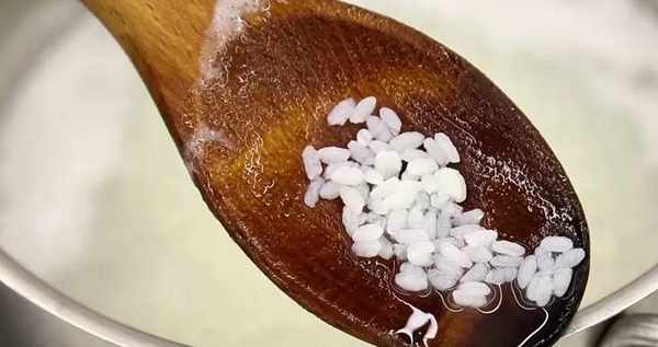 ①選用普通圓米,不需要用泰國香米。把米投入到沸水中,用中火開蓋煮15-25分鐘,偶爾可攪拌一下,煮至米粒爆裂,瀝幹備用。
