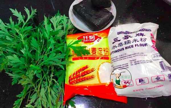 食材:嫩艾草、豆沙餡、糯米粉、小麥淀粉。