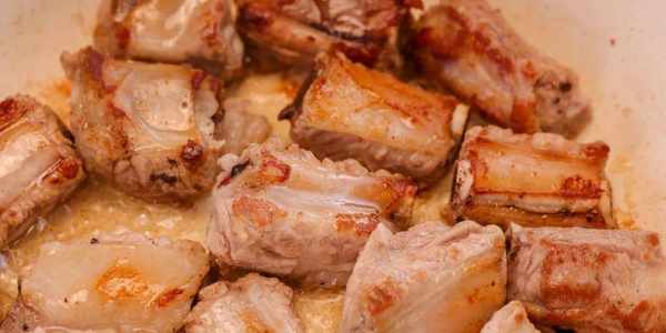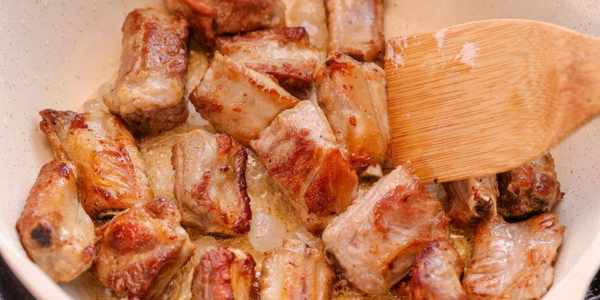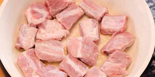 3.熱鍋倒油,碼入排骨,煎至排骨兩面焦黃。