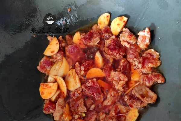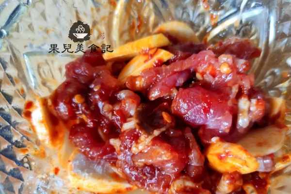 五、鍋中倒入適量菜籽油,油溫8成熱時下入醃制好的肉片,爆炒至變色熟透;