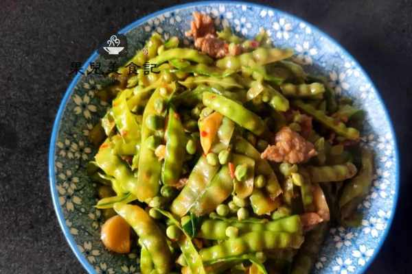 【食材】:帶殼嫩豌豆、豬瘦肉、豆瓣醬、生抽、蠔油、料酒、淀粉、薑、蒜、蔥;
