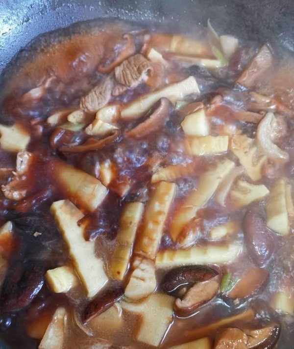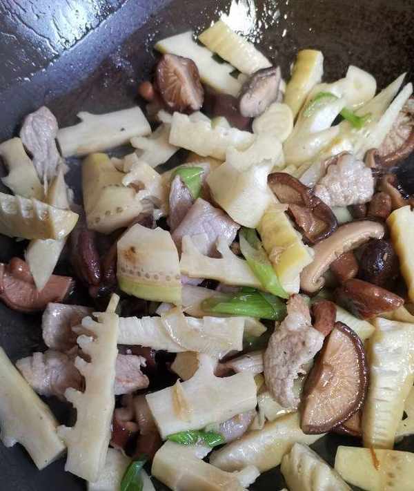 再放入焯好的竹筍,翻炒均勻。