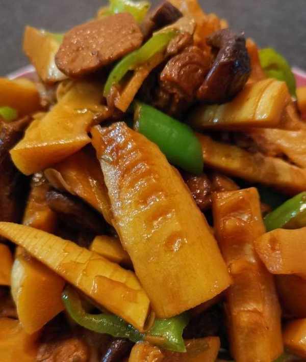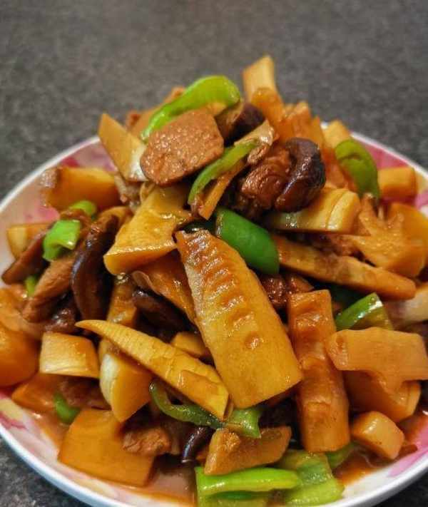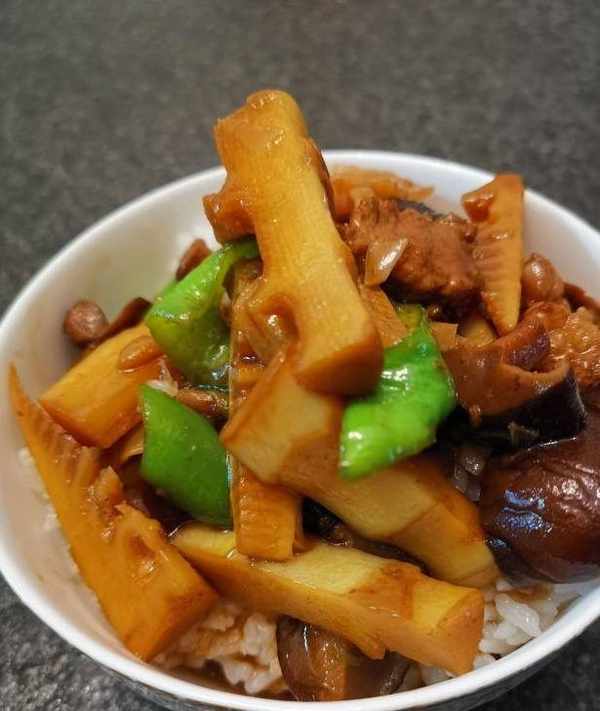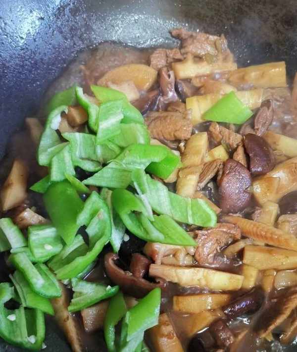 竹筍、豬肉、香菇、青椒、蔥、薑、蒜
