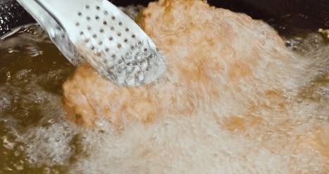 3.將油溫拉高到150°C~160°C,放入豬排進行第二次炸制,炸到酥脆備用。
