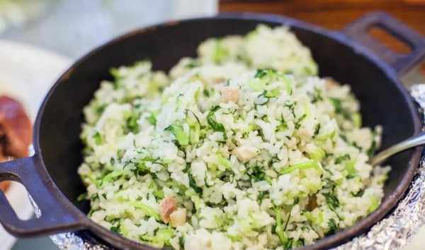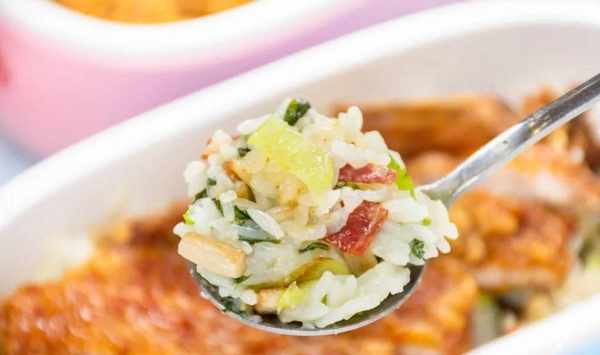一定得有飯有肉有菜,搭配均衡。肉一般選用臘肉、香腸、火腿等帶有鹽味、顏色紅亮的,蔬菜一定得是上海青,米粒最好是新米、香米,這樣菜飯在口感、顏色、營養上才會相得益彰。