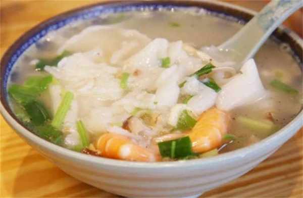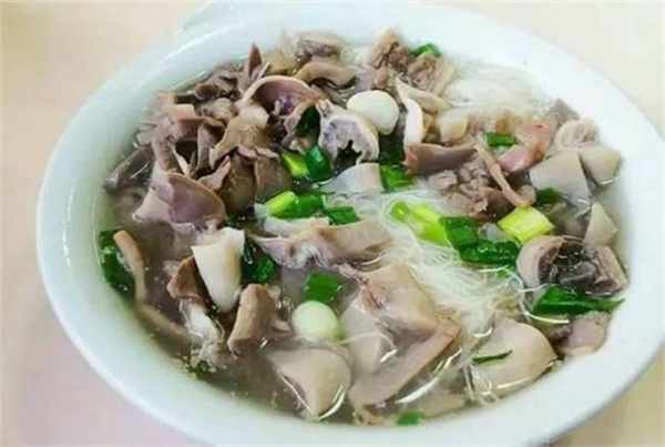 這道小吃在福州當地非常有名是用高湯,加入豬血,大腸,牛肚,百葉,米粉等原材料制作而成,看起來湯色比較清淡,但味道非常鮮美。