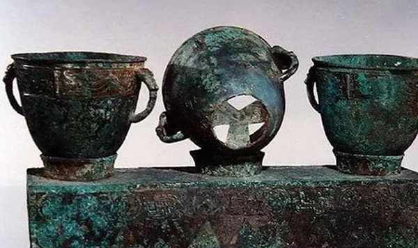青銅汽柱甑形器需配合鬲或釜類炊具使用,上部加嚴密的蓋,水蒸汽通過器物中空內柱進入甑內,由柱頭的鏤孔散發開來,蒸汽無法外泄將圍繞中柱的食物蒸熟。