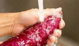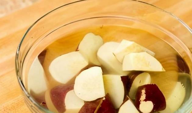 3.將紅薯在水中浸泡15分鐘以去除淀粉。