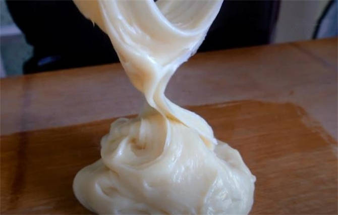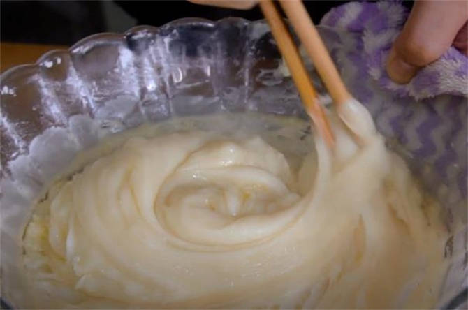 5.糯米粉蒸好瞭出鍋,趁熱把這30g的黃油給它化開,然後把它們給攪勻瞭。