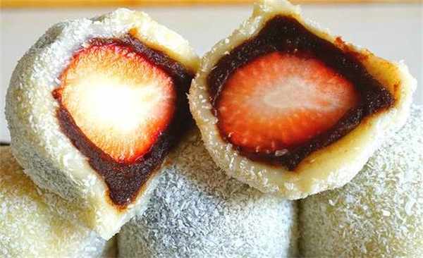 草莓、糯米粉、玉米淀粉、白糖、牛奶、黃油、豆沙餡、椰蓉