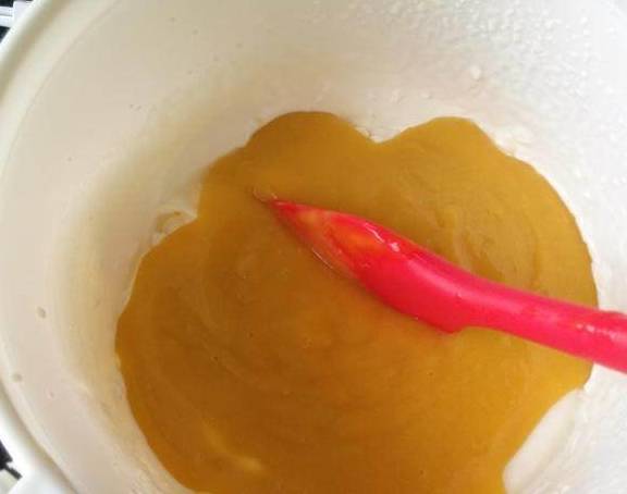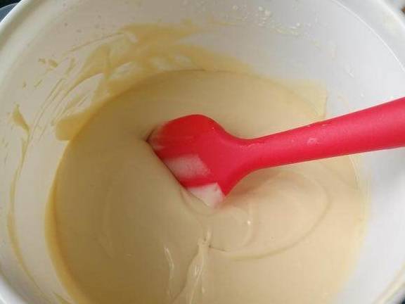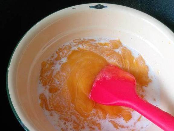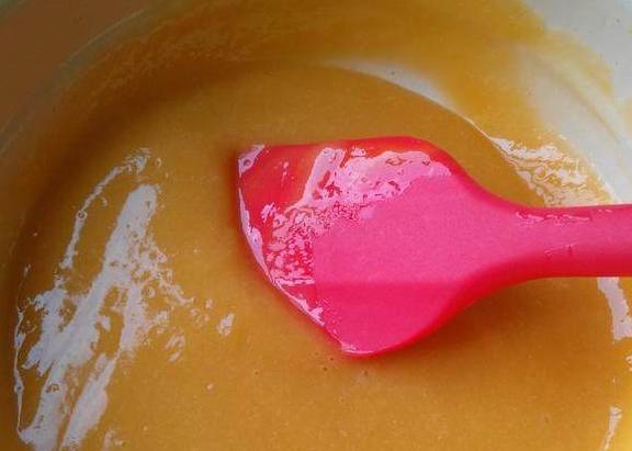 7.用刮刀攪拌均勻,就是芒果慕斯液。