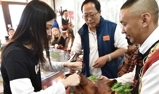 4月30日晚,在大理巍山古城南詔胡同蒙化食府,一眾網紅達人依次品嘗“南詔王宴”美味佳肴。有網紅達人一邊品嘗一邊直播,粉絲在線圍觀紛紛為南詔王宴光芒四射的魅力所折服。