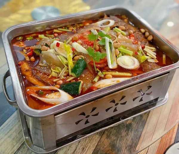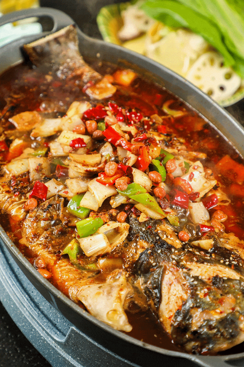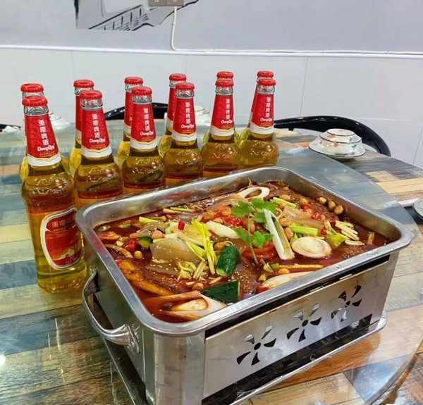 在高溫的作用下,烤魚咕嚕咕嚕作著響,魚肉和各種新鮮豐富的配料融合於一體,色澤金黃誘人,味道飄香四溢,在時間的醞釀下,讓味道更入佳境~