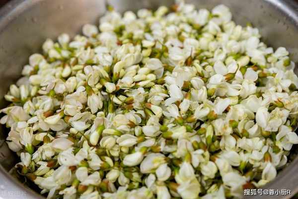 2、清洗幹凈後裝入盆裡,加淡鹽水浸泡槐花,可以去除小蟲子和灰塵。