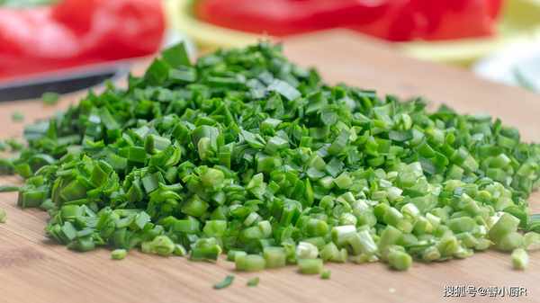 3、韭菜1把切末,再來切點蔥薑蒜,紅薯粉也泡好瞭;