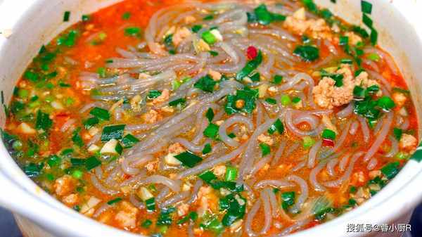 6、熱氣騰騰的韭香紅薯粉就做好瞭,韭菜、肉沫搭配起來真的超級香,這兩樣食材都是不可以被代替的,除瞭紅薯粉以外,我覺得湯汁也是精華,反正這一大鍋我是全部吃完瞭,湯汁也沒剩,喜歡就趕緊收藏試試吧!