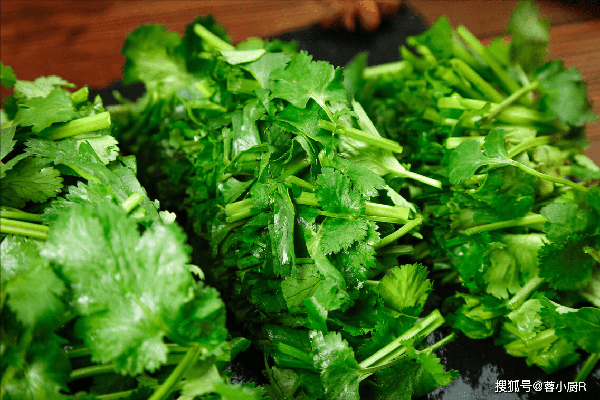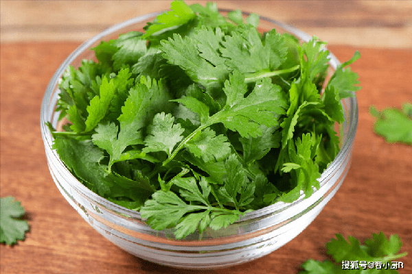 4、香菜沖洗幹凈後,控幹水分切段,放一旁備用。