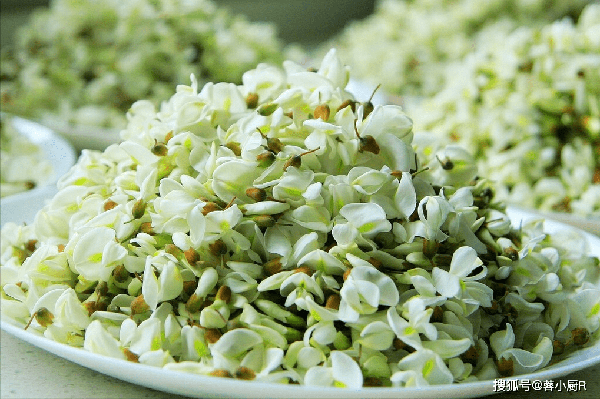 1、新鮮槐花1把,用手摘下來,半開未花香味甜度最好,全開的槐花香味會有些許損失。
