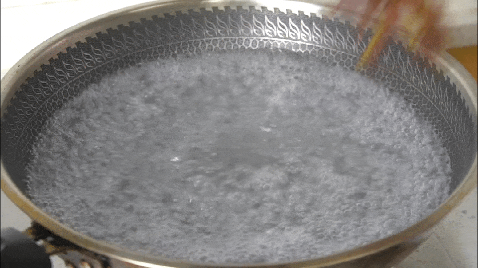 1、新鮮的香椿芽300克,先沖洗幹凈。起鍋燒水,水開加一勺鹽,接著倒入香椿焯水。