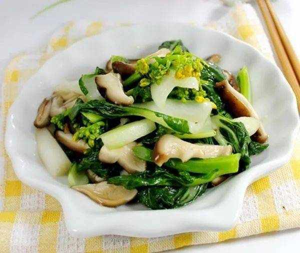 油菜苔1把、宴友食用油適量、食鹽適量、味精少許、蒜適量、淀粉2勺、白糖少許、白酒少許