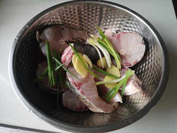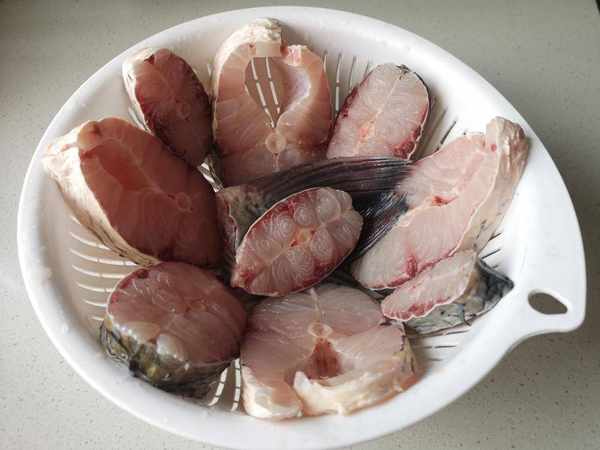 1.將草魚的鱗片、內臟和頭部去除,徹底清洗幹凈,切成1.5厘米左右的片,晾幹。