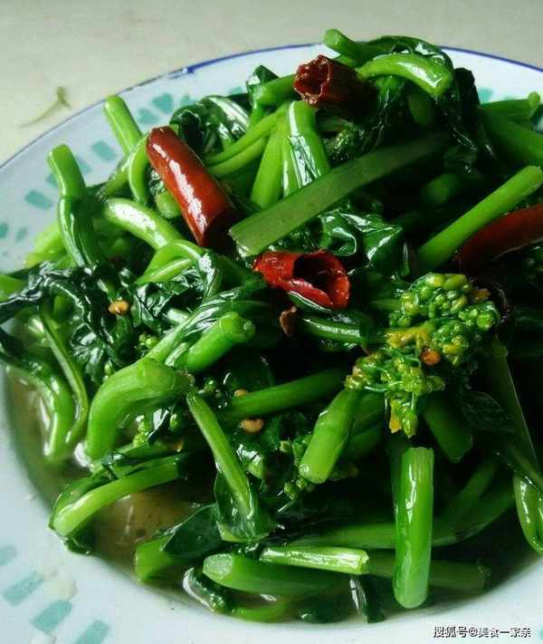 1、準備一些新鮮菜心、蒜、幹辣椒、鹽、豬油。
