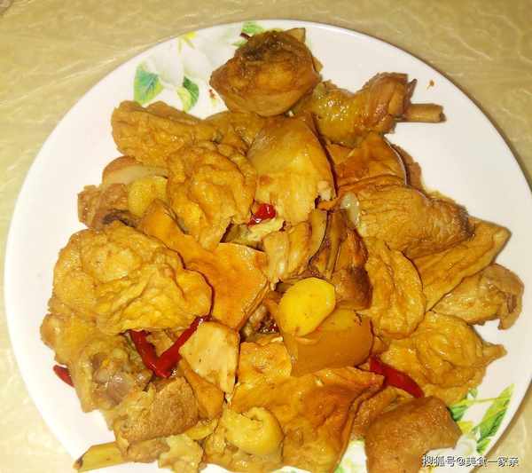 1、準備三個雞腿、一塊五花肉、蒜、薑、鹵料、幹辣椒、豆幹、醬油、蠔油、老抽、鹽、冰糖、米酒。
