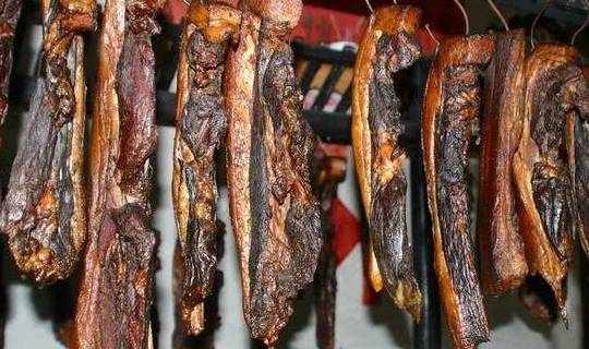 最後一種是雲南麗江的臘肉。當地人制作這種臘肉的時間一般是在冬季,取每頭豬肉比較多的軟排作為原料,將其洗凈放到一個大缸裡然後再均勻塗抹上食鹽醃漬,然後保持通風讓豬肉風幹一個多月後就可以吃瞭。