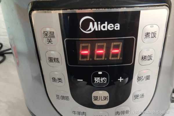 步驟四:按煮粥鍵,剩下的工作就交給電飯煲瞭,趁這個時候,可以做一點配粥小菜,煎幾個餃子或者餅子配粥吃。