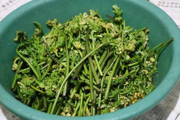 3、采摘後,將蕨菜放在清水中浸泡幾個小時,使其自然去除雜質和苦味。處理完畢後的蕨菜,可以放在陰涼處保存,保鮮期一般為3-4天。