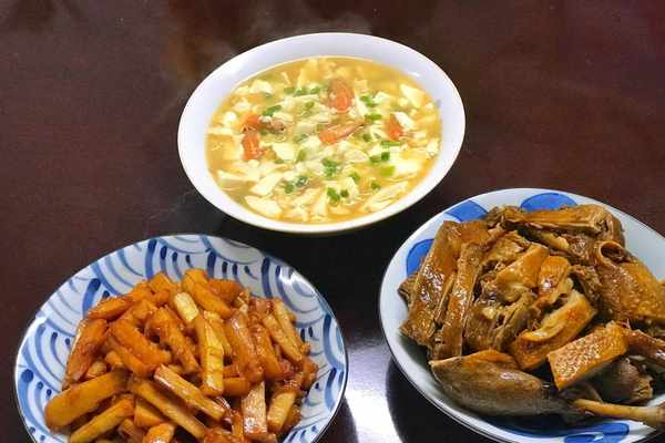 小河蝦豆腐:這是豆腐最鮮美最簡單的做法,小河蝦油爆加入適量水,煮開放入豆腐,用鍋鏟劃成小塊,加適量鹽調味就可以。