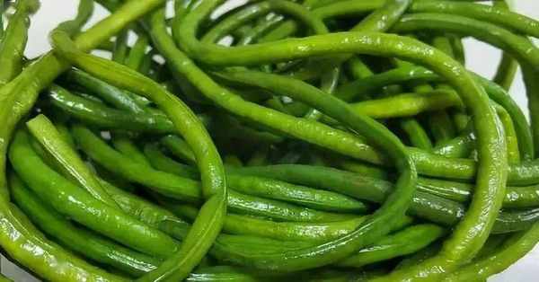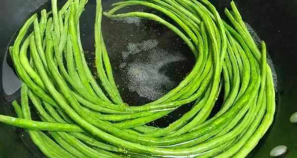 起鍋熱水,放入一勺鹽,一滴油,把豆角過水,至8成熟即可