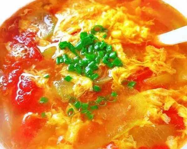 3、然後加入攪拌好的雞蛋液,慢慢的均勻淋入鍋中,雞蛋煮熟後,撒上蔥花,即可,喜歡喝湯汁濃稠的,可以加一點淀粉,就更加完美瞭,酸甜可口,太好喝瞭,