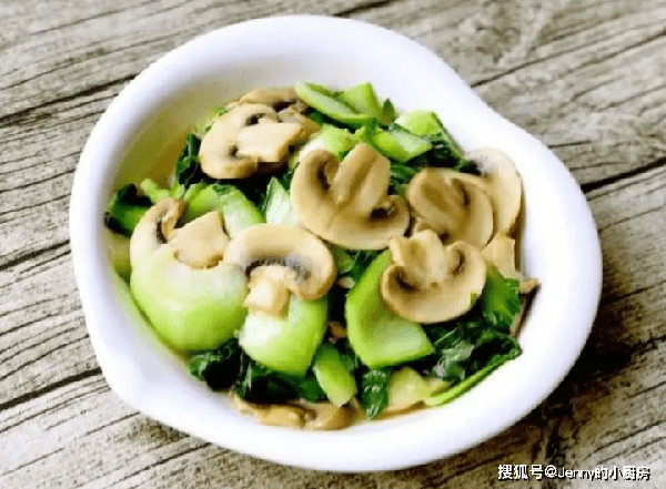 油菜清洗幹凈,瀝幹水分。口蘑清洗幹凈,切成小塊。大蒜拍碎切末待用。