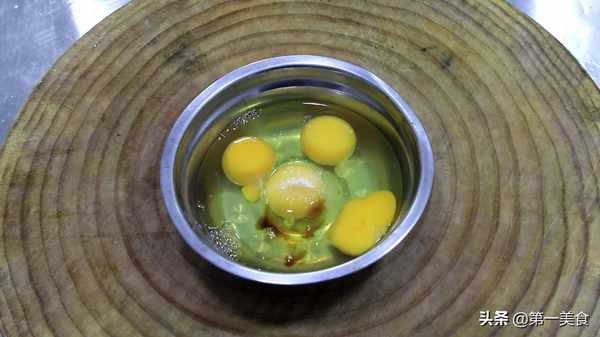 將四個雞蛋倒入碗中,加入1克鹽,並加入少許陳醋,使雞蛋具有基本風味。陳醋可以使雞蛋味道更嫩,還能去除腥味。將一些蔥花切成小塊,放入鍋中備用。