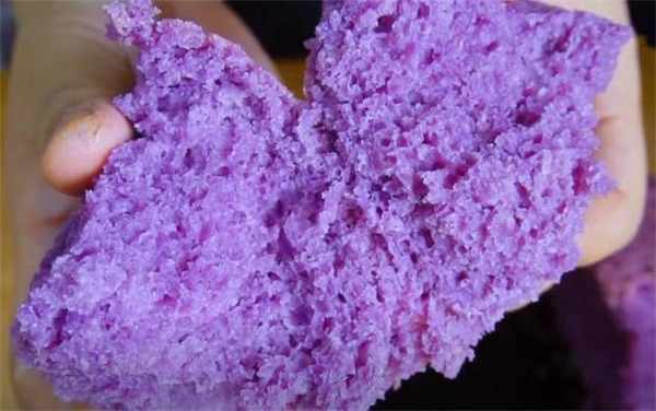 6.看一下這個氣孔組織特別的好,如果傢裡面有挑食的小朋友,可以把紫薯做成發糕試試,這個發糕吃起來特別的松軟,就像吃蛋糕一樣。