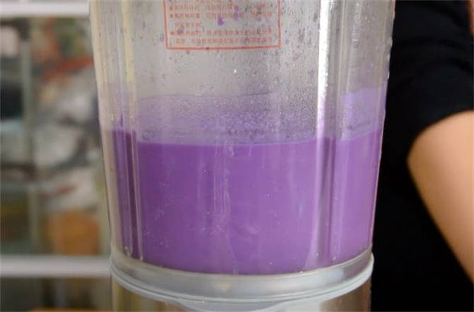 3.把紫薯泥放在料理機裡面,加上一些清水,選擇果蔬鍵打成泥。