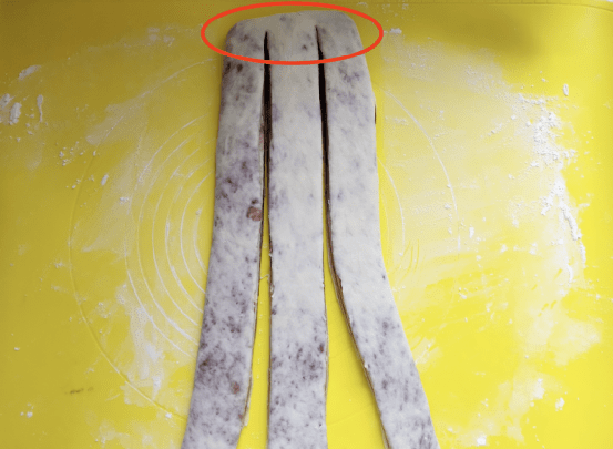 11、平分三等份切開,註意最前面(紅圈處)不要完全切開。
