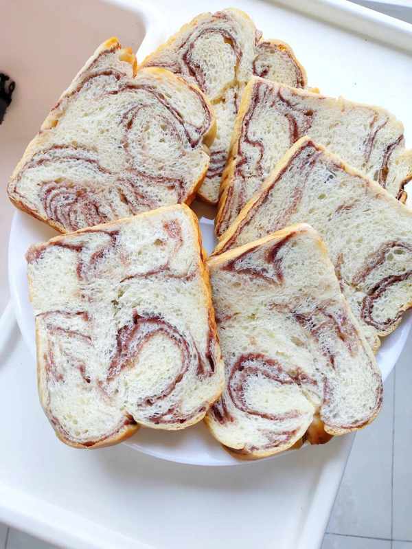 看到頭圖上這個美妙的大理石花紋瞭嗎?不知道還以為是哪個高級面包房出品的吐司!沒想到,是在傢做出來噠~