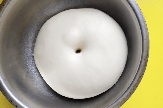 6、面團發酵到兩倍大,手指蘸面粉戳一下沒有明顯的回縮,說明發酵好瞭;