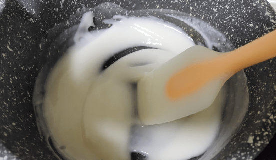 1、首先制作湯種,高筋面粉20克和100克清水攪拌均勻倒入小鍋中,開小火攪拌,攪拌成糊狀(用烘焙溫度計測量65度),關火蓋上蓋子放涼;