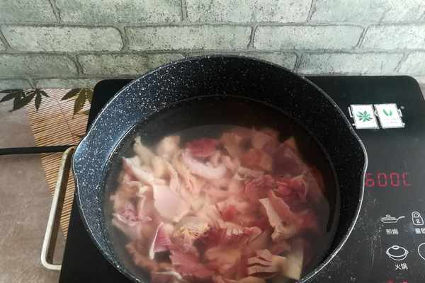 第三步:雞胗加冷水,放入料酒,冷水開火煮,煮開後撈出來沖洗幹凈,瀝一下水分。肉類焯水,冷水開火可以更好地去除腥味。