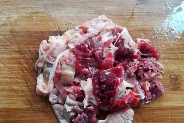 第二步:雞胗切花刀,切成小塊,不要切太小,焯水以後會縮小。