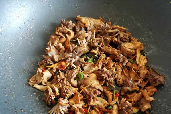 第七步:放入焯過水的雞胗翻炒一會,加適量的鹽調味。