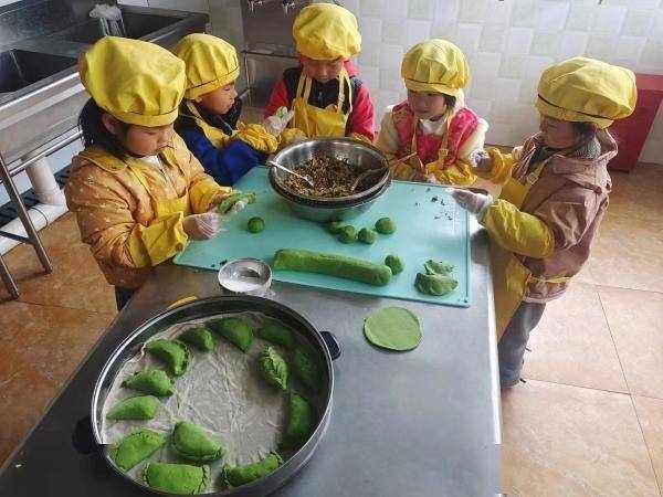 4月3日上午,巍山中心幼兒園古淵頭園區大班開展瞭“小小清明粿,濃濃節日情”的活動。